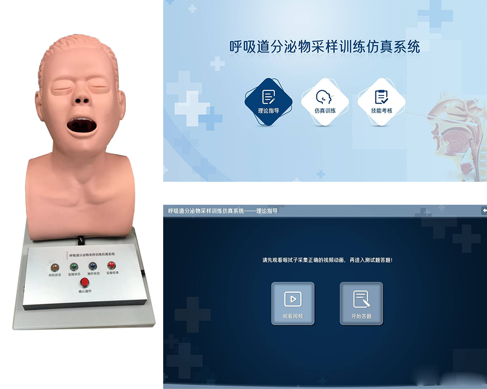 1.理论教学模块,主要通过视频教学的方式,系统的教授呼吸道分泌物采集的操作步骤,要点,应急处理等知识;